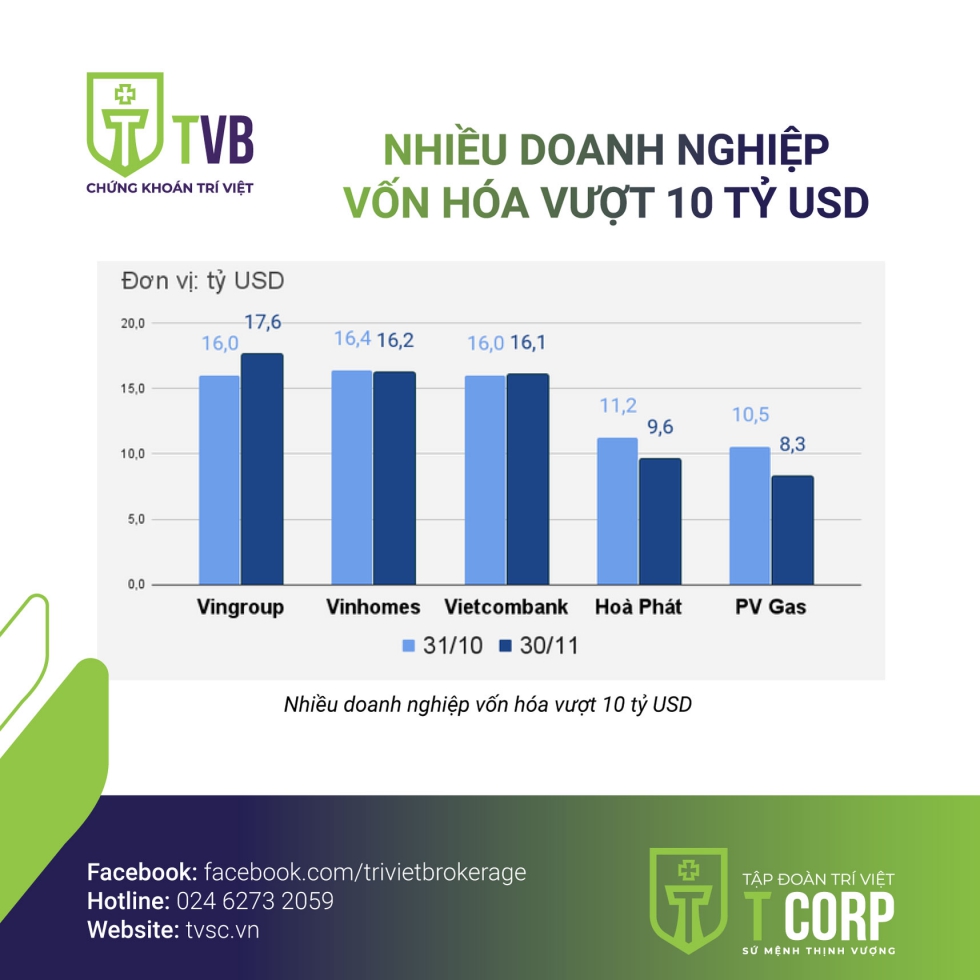 - Nhiều doanh nghiệp vốn hóa vượt 10 tỷ USD