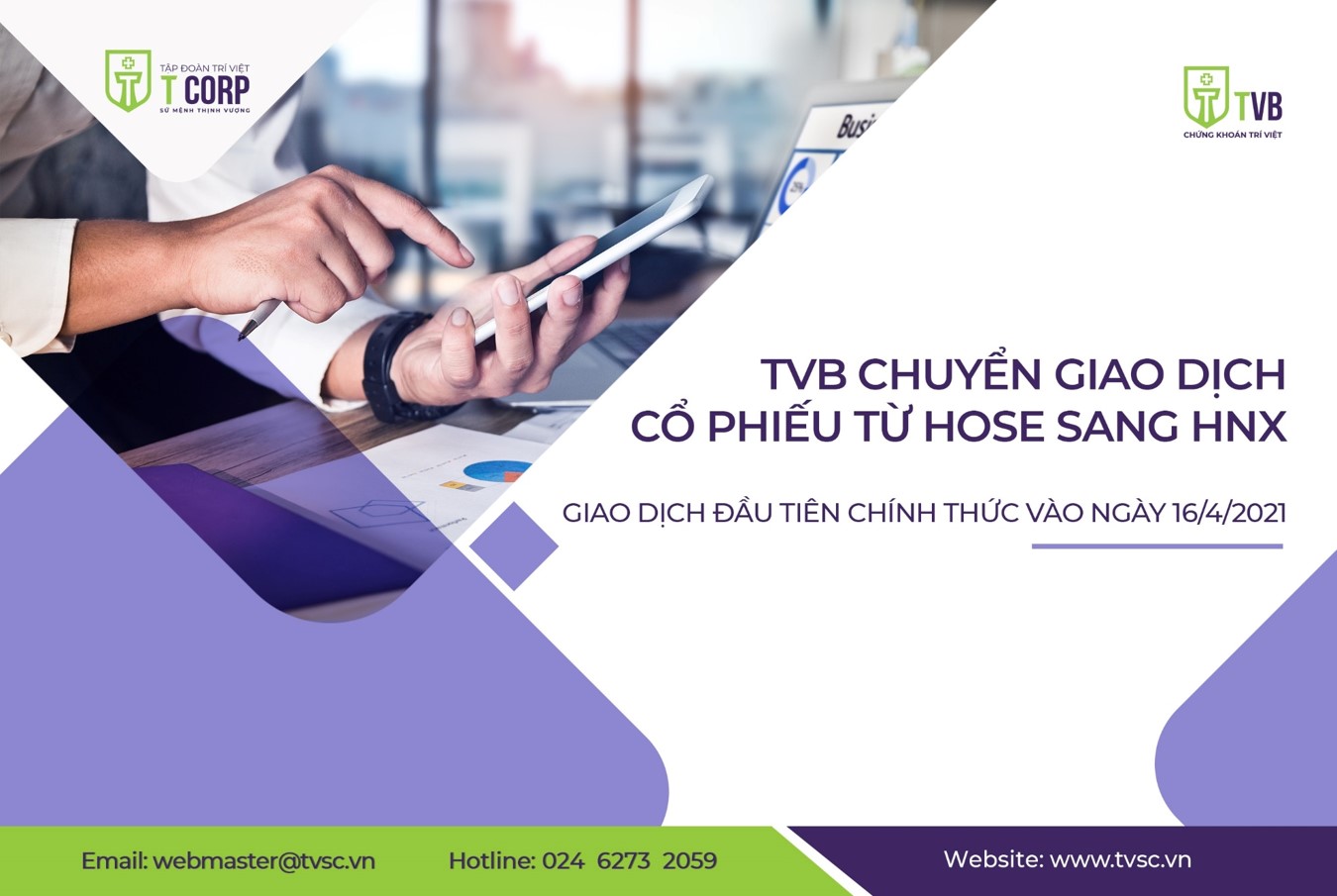 Tiếp đó, ngày 05/04, Chứng khoán Trí Việt thông báo hơn 54,7 triệu cổ phiếu TVB sẽ được chuyển giao dịch sang HNX. Ngày giao dịch cuối cùng của TVB tại HOSE là 12/04/2021.