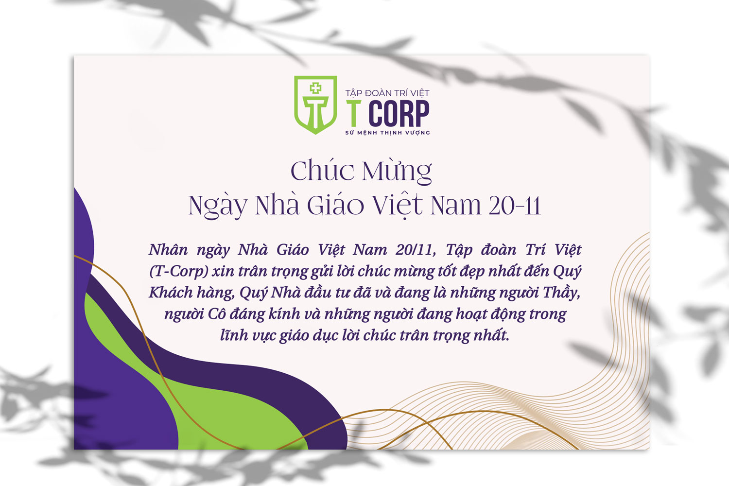 Nhân Ngày Nhà Giáo Việt Nam 20/11, CTCP Chứng khoán Trí Việt xin trân trọng gửi lời chúc mừng tốt đẹp nhất đến Quý Khách hàng, Quý Nhà đầu tư là những người Thầy, người Cô đáng kính, những người đang hoạt động trong lĩnh vực giáo dục.