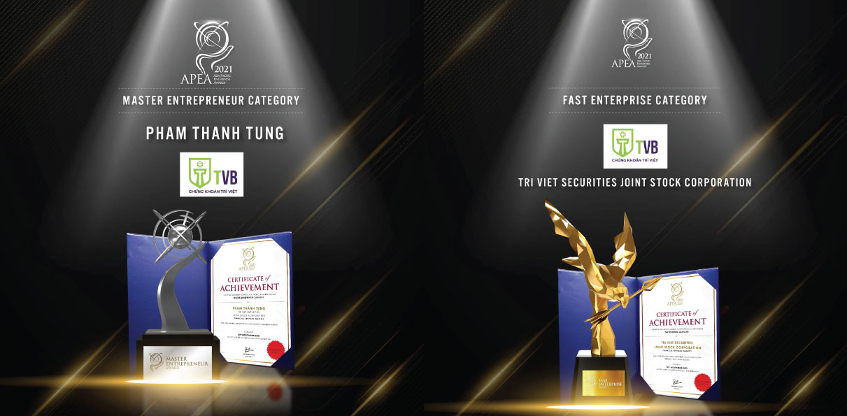 Với những nỗ lực và thành tựu nổi bật trong năm 2021, Công ty cổ phần Chứng khoán Trí Việt (mã chứng kkhoán TVB) đã xuất sắc được Enterprise Asia bình chọn cho danh hiệu “Doanh nghiệp tăng trưởng nhanh”. Cũng trong chương trình này, ông Phạm Thanh Tùng, Chủ tịch Công ty nhận được giải thưởng cho hạng mục cá nhân “Doanh nhân xuất sắc châu Á”.