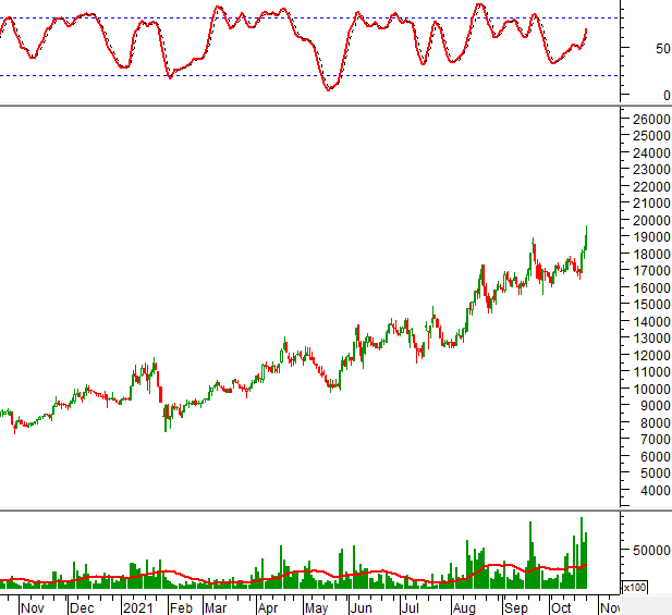 Theo Vietstock, trong phiên giao dịch ngày 25/10/2021, giá cổ phiếu TVC tăng mạnh và vượt vùng 18,500 - 18,900 (tương đương đỉnh cũ tháng 09/2021).