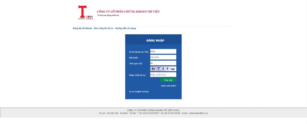 Ngày 03/03/2020, Công ty Cổ phần Chứng khoán Trí Việt chính thức nâng cấp và ra mắt giao diện website mới và giữ nguyên tên miền: www.tvsc.vn. Giao diện website mới được ra đời sau quá trình lắng nghe, tìm hiểu và phân tích nhu cầu của khách hàng trong việc tìm kiếm những thông tin hữu ích về thị trường chứng khoán cũng như về các sản phẩm, dịch vụ của TVB.